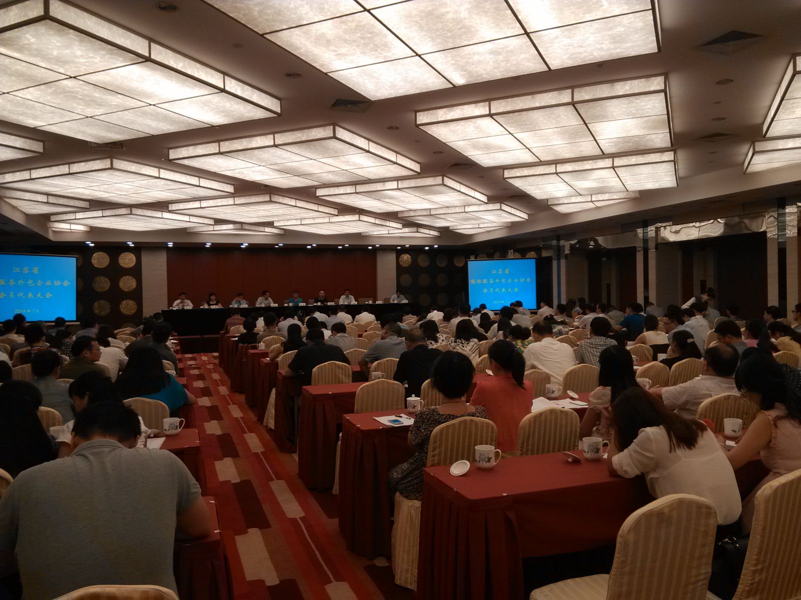 2014年7月18日南京市外包協(xié)會受邀參加江蘇省外包協(xié)會會員代表大會,在大會期間聽取了省商務(wù)廳領(lǐng)導(dǎo)對江蘇省服務(wù)外包行業(yè)發(fā)展的相關(guān)發(fā)言。